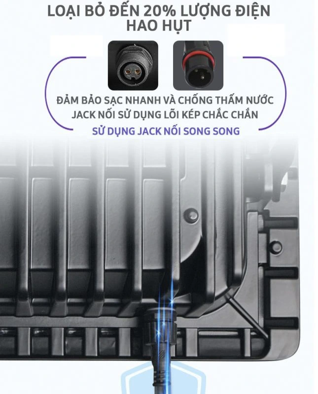 Đèn năng lượng mặt trời 300W ABM SOLAR không chỉ nổi bật với chức năng tự động bật/tắt thông minh, độ chống nước cao cho phép sử dụng trong mọi điều kiện thời tiết, mà còn sở hữu phạm vi độ sáng rộng lên tới hàng trăm mét. Đặc biệt, với khả năng sạc trong khoảng 4 đến 6 giờ, đèn có thể cung cấp ánh sáng suốt 12-14 giờ đồng hồ, đảm bảo sự tiện lợi và linh hoạt. Kết nối jack song song được thiết kế với mục đích đảm bảo an toàn cho người dùng khi sử dụng, tránh tình trạng giật điện hay chập chờn. Bên cạnh đó, sự sử dụng tấm pin năng lượng mặt trời chất lượng cao giúp tối ưu hóa khả năng tận dụng năng lượng mặt trời, từ đó cái thiện độ bền và tuổi thọ của sản phẩm. Đến với Đèn năng lượng mặt trời 300W ABM SOLAR, bạn sẽ sở hữu nguồn sáng tiết kiệm, an toàn và bền bỉ, đáng tin cậy cho mọi không gian.
