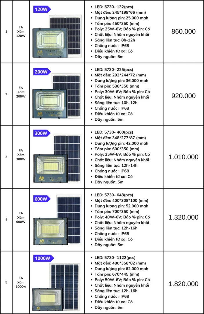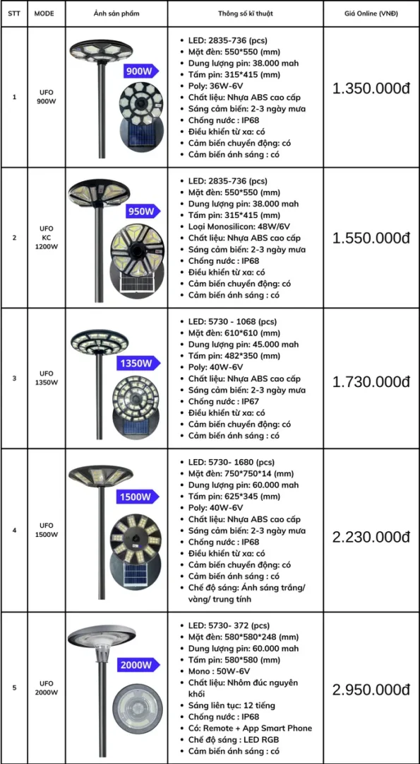 – Trên đây là báo giá một số mẫu đèn năng lượng mặt trời mới nhất năm 2023 – Mọi thông tin về giá thành sản phẩm cũng như khuyến mãi, quý khách vui lòng liên hệ lại số Zalo: 0815.82.9999.