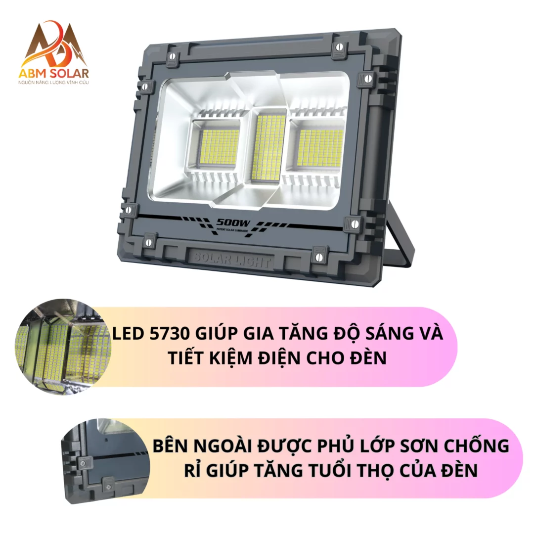 Hiện nay, trên thị trường có nhiều thương hiệu đèn năng lượng mặt trời 500W khác nhau. Đi cùng đó là thương hiệu đèn năng lượng mặt trời ABM SOLAR:
