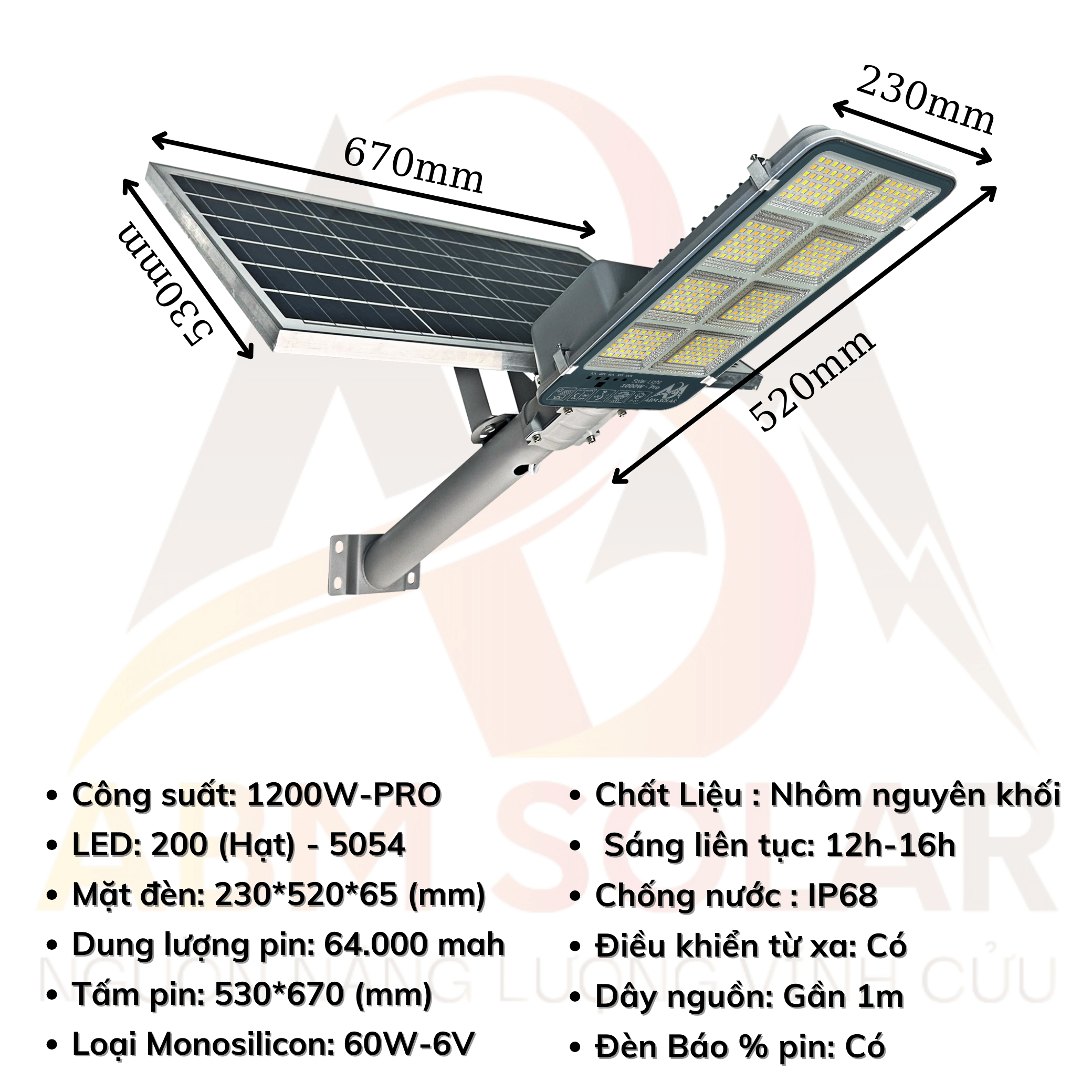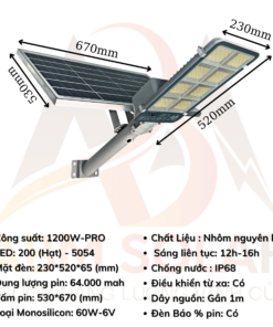 – Đèn đường năng lượng mặt trời công suất 1200W