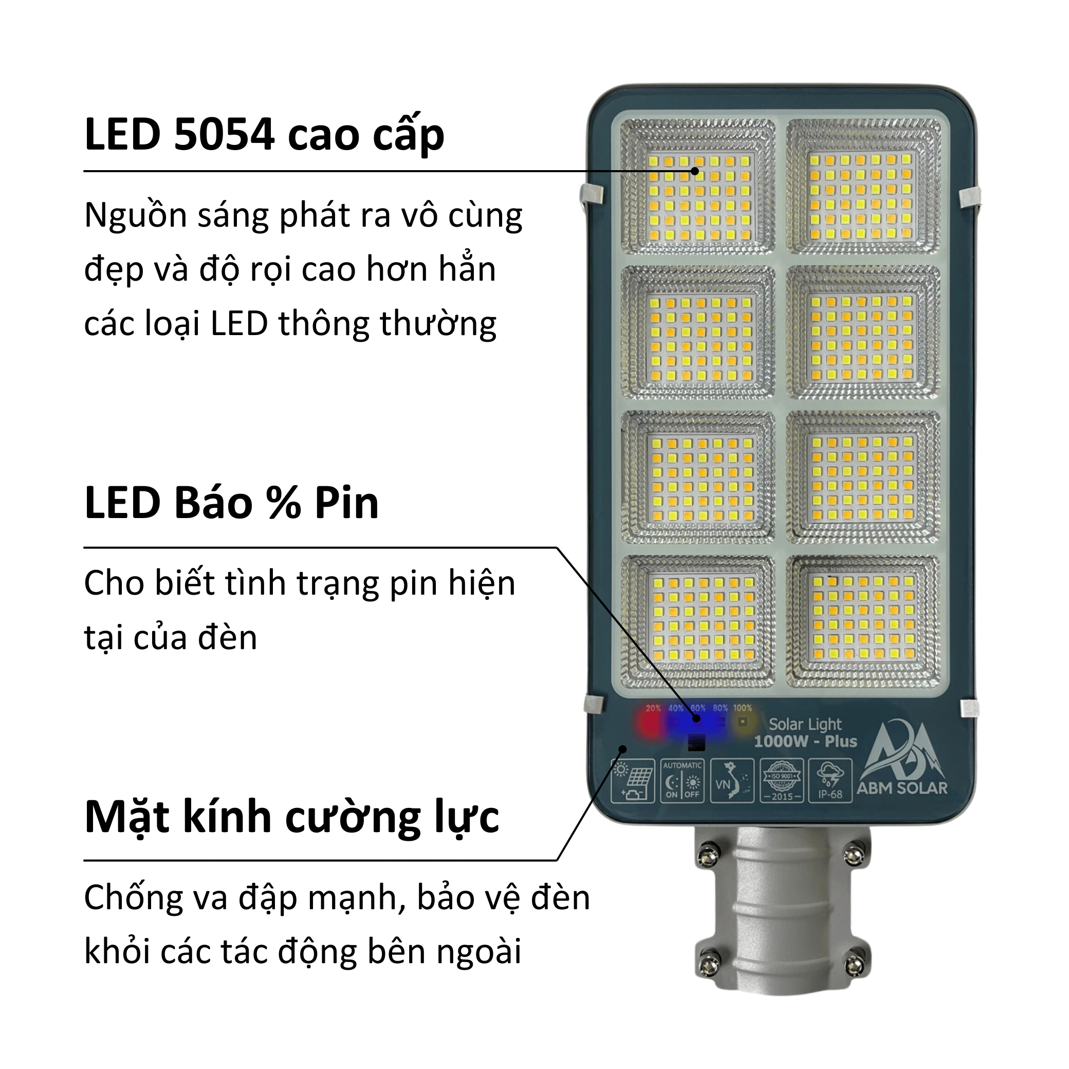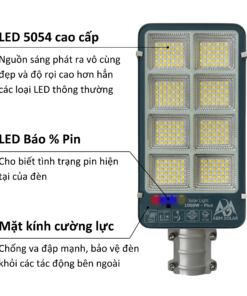 – Không mảnh vỡ thủy tinh, chất liệu nhôm đúc nguyên khối. Đèn đường năng lượng mặt trời công suất 1200W