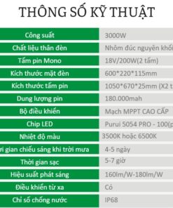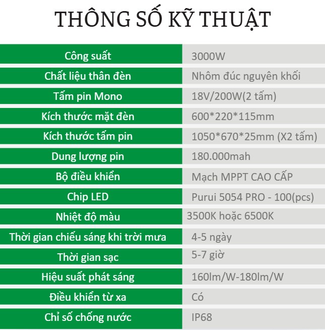 | Thời gian chiếu sáng | 4-5 ngày mưa |