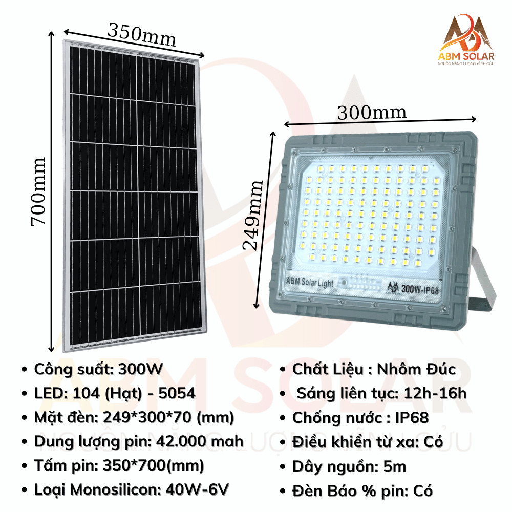 Đèn Pha Mắt Ngọc Năng Lượng Mặt Trời 300W ABM SOLAR