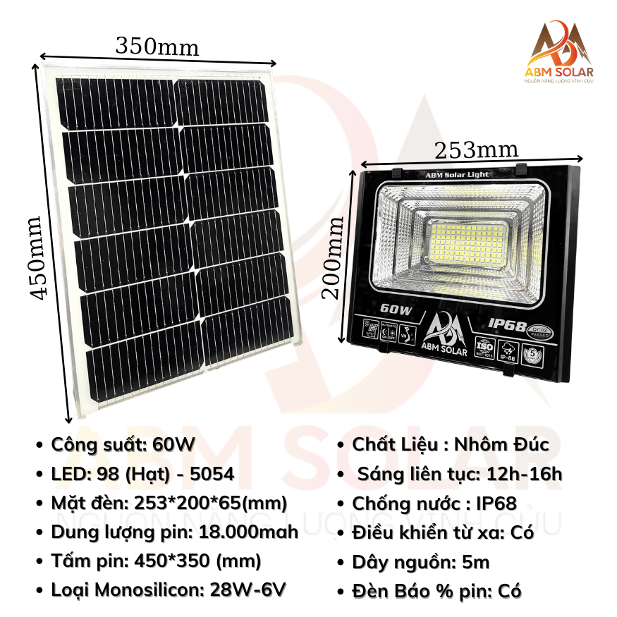 Mới nhất trong dòng sản phẩm đèn pha 60W Năng Lượng mặt trời của hãng ABM SOLAR năm 2023 cũng là dòng đèn pha có công suất lớn nhất hiện nay của hãng ABM SOLAR