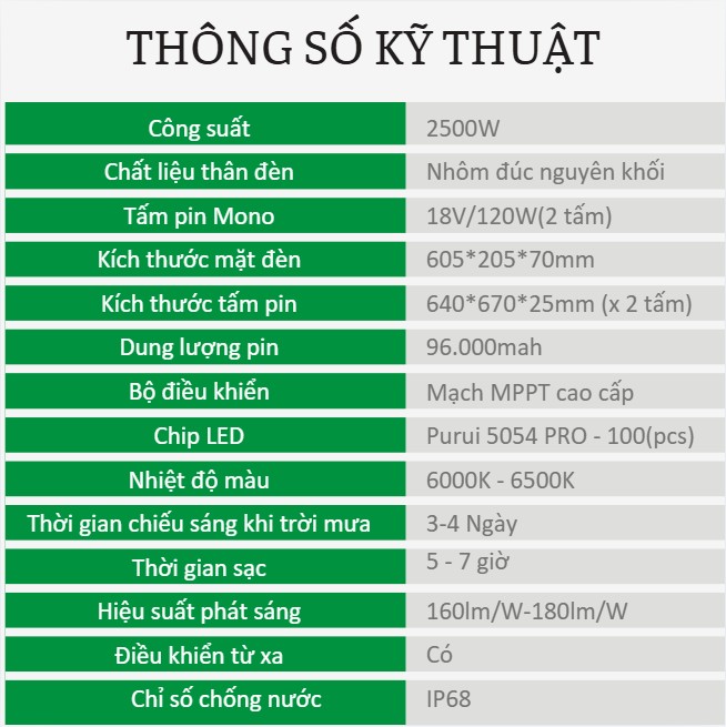 | Thời gian chiếu sáng | 3-4 ngày mưa |